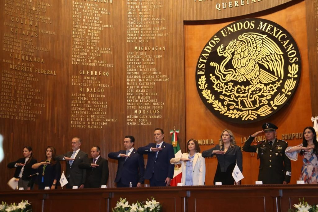 Además, en el presídium estuvieron presentes, el magistrado presidente del Poder Judicial del Estado, Braulio Guerra Urbiola; la presidenta de la Mesa Directiva de la Legislatura del Estado, Laura Andrea Tovar Saavedra; el General de Brigada Diplomado del Estado Mayor, comandante de la Décimo Séptima Zona Militar del Estado de Querétaro, Vinicio Perea Alcaraz; secretario de desarrollo sustentable del Gobierno del Estado, Marco Antonio Del Prete Tercero; la secretaria del trabajo del Gobierno del Estado, Liliana San Martín Castillo; y la secretaria de turismo del Gobierno del Estado, Adriana Vega Vázquez Mellado.